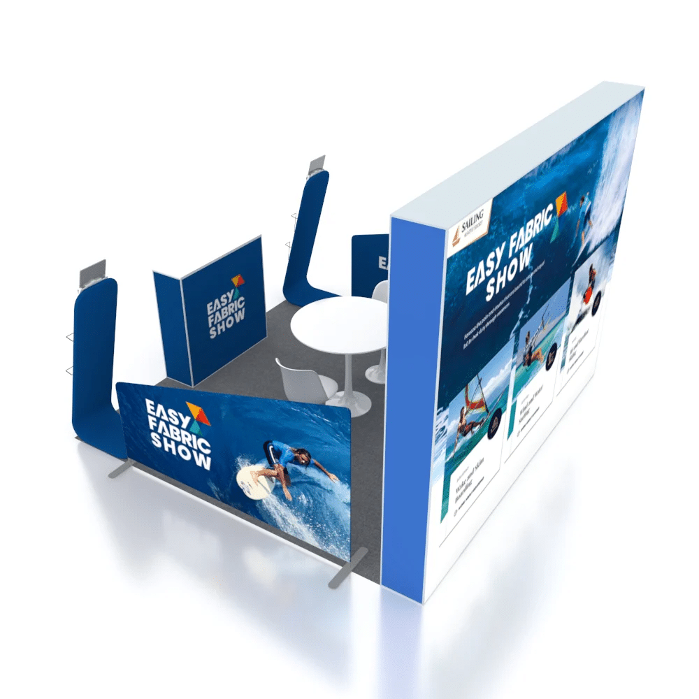 Create a lasting first impression with large-format SEG (Silicone Edge Graphic) fabric prints. Vibrant dye-sublimation graphics fit seamlessly into the frame, offering wrinkle-free visuals and bold brand messaging that stand out in crowded exhibition halls.
